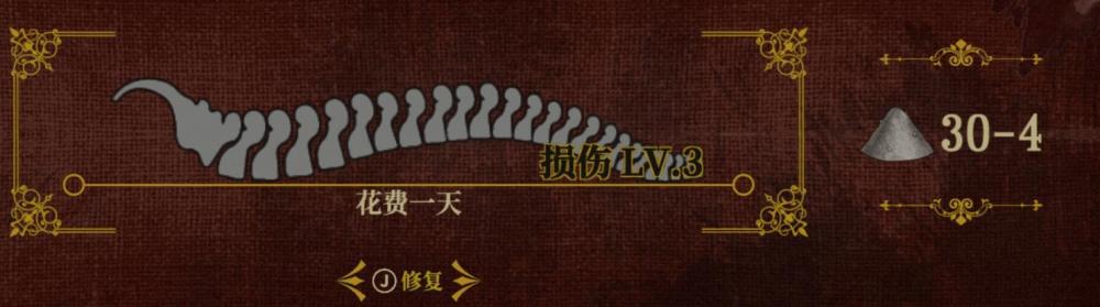 骨骼損傷:在戰鬥中遭受傷害時就會累積這個數值,骨骼損傷提高後,肉體的抗擊打性能會明顯下降。只有回到據點後才能修復。一般需要耗費戰略資源骨粉和時間。修復時肉體是不能出擊的。