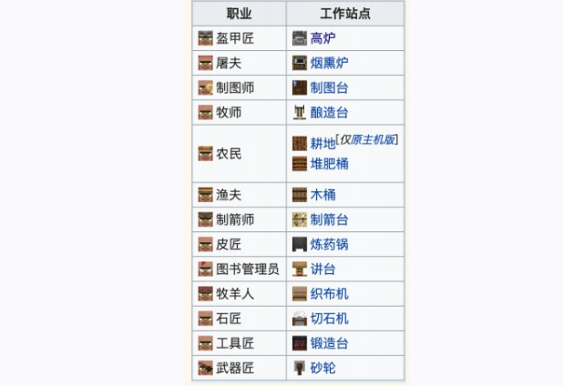 首頁 我的世界 問答 我的世界村民工作台有哪些? 2022-07-01 我的世界村民工作台有盔甲匠的高爐、屠夫的煙熏爐、制圖師的制圖台、牧師的釀造台、農民的耕地和堆肥桶、漁夫的木盒、制箭師的制箭台、皮匠的煉葯鍋、圖書管理員的講台、牧羊人的織布機、石匠的切石機、巨匠的鍛造台和武器匠的砂輪。