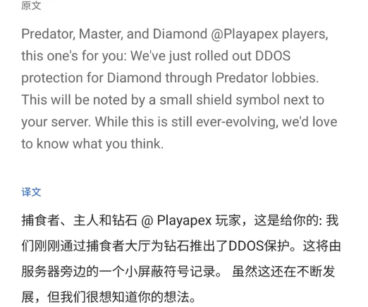 類似的情況在《APEX英雄》已經持續很長一段時間,不少高段位玩家對此可能都有些習以為常了。但就在1月26日,也就是大夥兒口中《戰地1》「忌日」的第二天,重生工作室發布了一則聲明,有關DDoS攻擊防禦的聲明:
