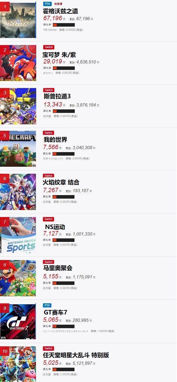 在2.06~2.12的新一周Fami通銷量榜上,PS5版《霍格沃茨之遺》以6.7萬的銷量獲得冠軍。