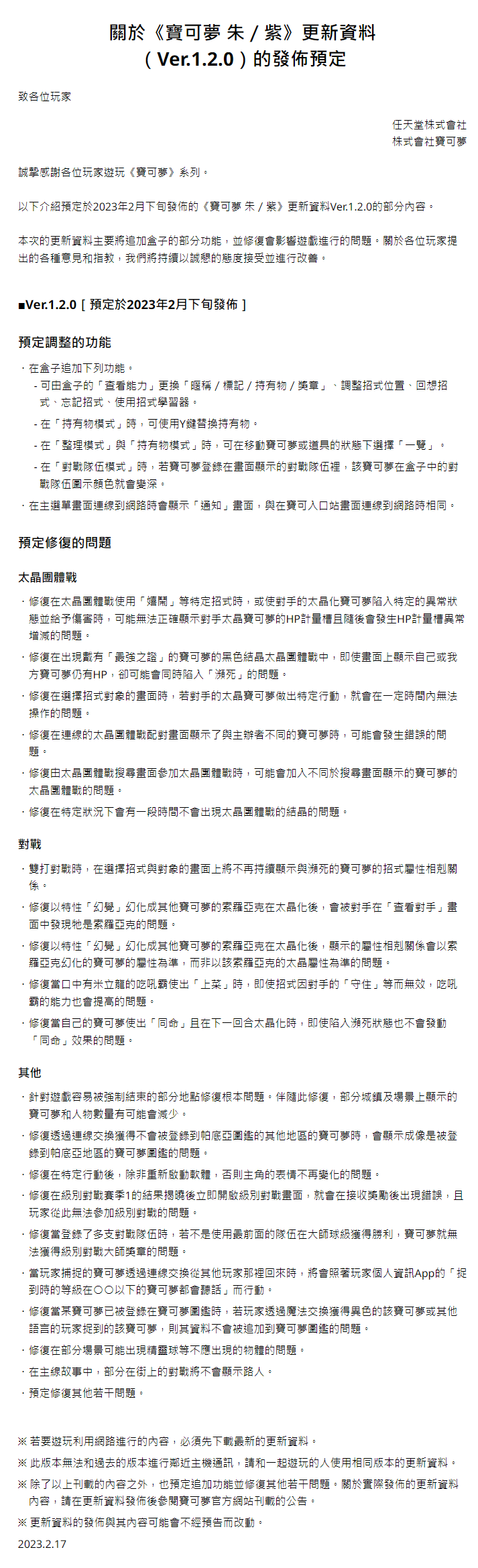 4、《寶可夢:朱/紫》1.2.0更新詳情