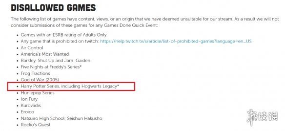 GDQ通過定期舉辦速通遊戲大會,為預防癌症基金會、無國界醫生組織和其他慈善機構籌集資金。GDQ表示,如果遊戲包含不適合他們活動的內容,將會被添加到禁止列表中,此列表還包含任何成人級以及在Twitch上被禁止直播的遊戲。GDQ可能考慮《霍格沃茨之遺》發售後被跨性別群體抵制,怕引起爭議,於是乾脆禁止。