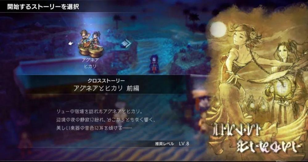 相比上代路人玩法,本作設計了角色之間的部分劇情,兩兩為伴,八個人可以發生四段雙人劇情,像獵人和葯師等。