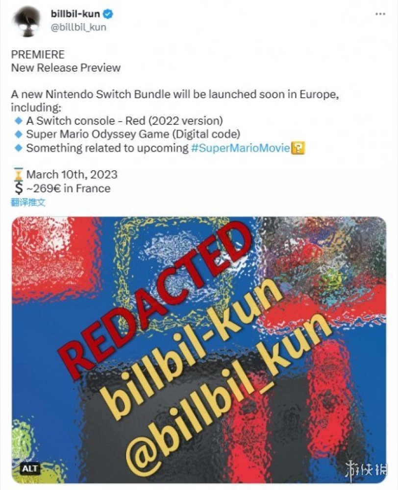 知名爆料者Billbil-kun透露,隨著《超級馬力歐兄弟大電影》即將上映,任天堂將在3月10號推出新的Switch捆綁套裝,在法國地區售價為269歐元(約合人民幣1973元),該捆綁套裝包含:紅色版Switch(2022款)、《超級馬里奧:奧德賽》數字版 以及其他與《超級馬力歐兄弟大電影》有關的東西。該捆綁套裝在其他地區的售價和上市時間暫不清楚。