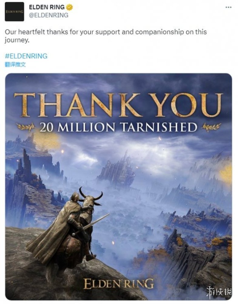 《艾爾登法環》官方今日宣布,本作的全球出貨量(包含實體版和數字版)目前已經突破2000萬份,官方公布紀念賀圖向支持本作的玩家們表達了感謝。《艾爾登法環》發售一周年慶典將於2月25號舉辦,或許會公布玩家期待已久的DLC消息。