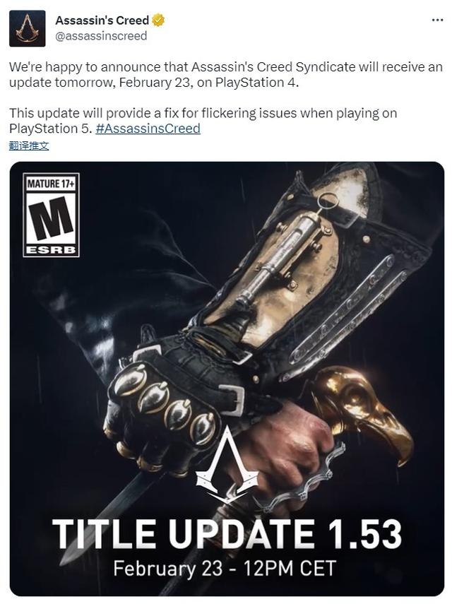 《刺客信條》官方推特賬號宣布《刺客信條:梟雄》PS4版將獲得補丁更新(版本1.53),北京時間2月23日19:00上線,這將修復使用PS5運行時遊戲的光影閃爍問題。