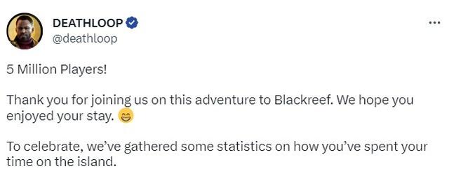 為了慶祝這一里程碑,官方還公布了一些有趣的玩家統計數據,其中全《死亡循環》玩家發射的子彈排起來足夠繞地球3.2圈,而游戲中最致命的區域是Updaam,共計有超過3500萬人在這裡死亡。