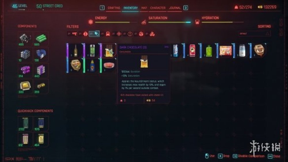 該MOD在遊戲中增加了新的UI,遊戲界面左上角的狀態欄下方會顯示飢餓值、口渴值和疲勞值的計量表。同時該MOD對遊戲中的食物進行了大修,並添加了一些特殊狀態,例如:喝酒後會降低移動速度、喝能量飲料增加耐力上限等。食物也有了等級,等級越高售價越貴。