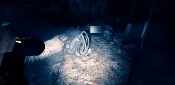 3:當你處理完畢全部的怪物之後,持續往裡面走,在一個水邊就可以看到呼吸機了,撿起之後會自動帶上的。