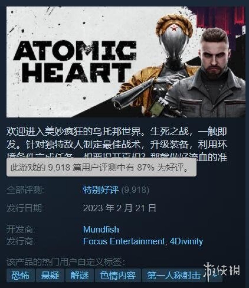 截止到發稿時為止,《原子之心》在Steam上的總評價為「特別好評」,9918篇用戶評測中,好評率達到了87%,可以說是很優秀了,還沒有玩過它的小夥伴們可以包個XGP嘗試一下。
