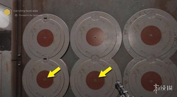 與黃色箭頭所示的圓盤互動即可。