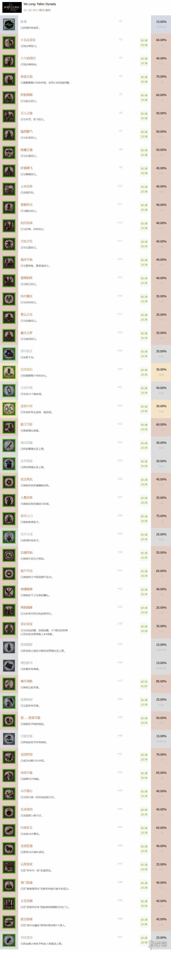 《卧龍:蒼天隕落》將於3月3日正式發售,PS獎盃列表也已經流出,遊戲包含共51座獎盃,1白金杯,2金杯,10銀杯,包含聯機獎盃。