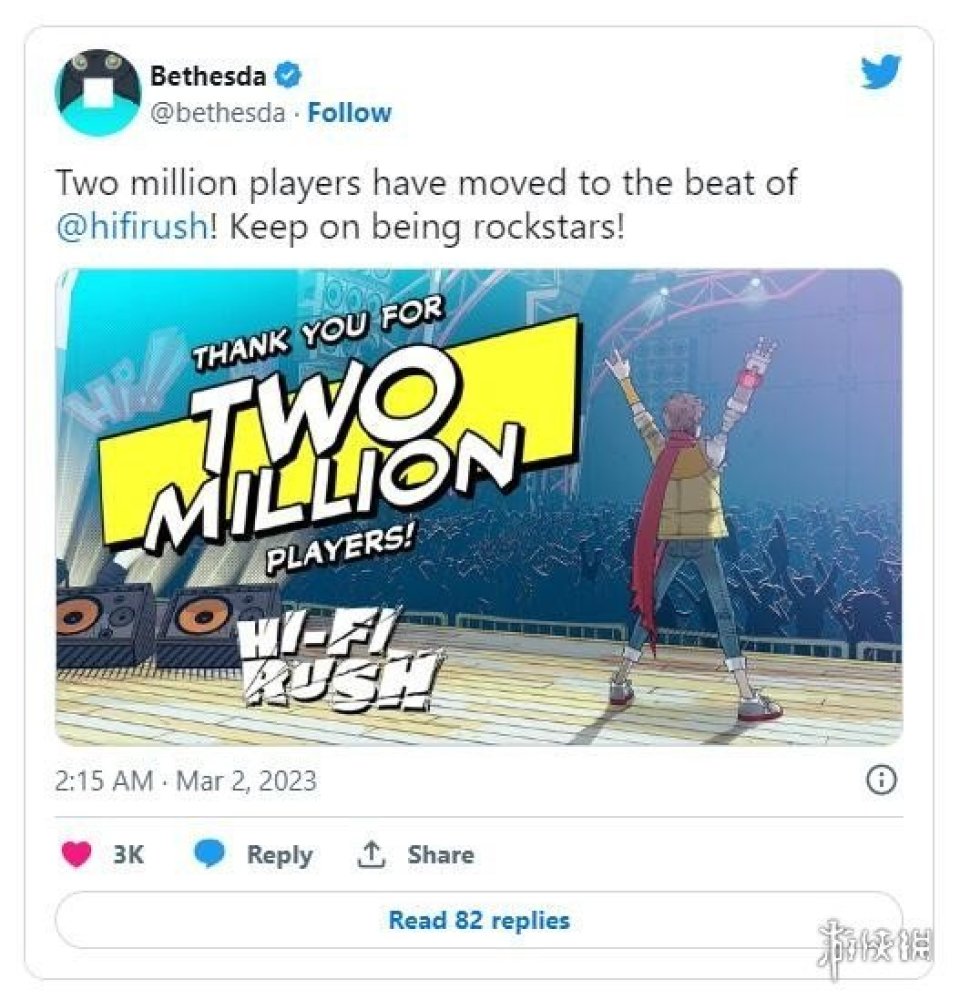 B社最近在推特上透露,已經有超過200萬人遊玩了《Hi-Fi Rush》。當然,遊戲也可以通過XGP獲得,所以這個數字並不能反映遊戲的銷售情況。