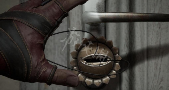 需要移動滑鼠然後調整手套的位置有點像撬鎖的感覺張開到最大的位置再點擊轉動將鎖轉動至平行狀態。