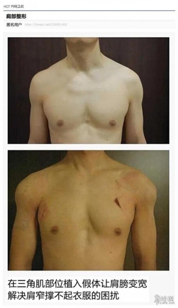 更離譜的是,韓國這兩年還發展出了「肩部整形」的項目,通過植入假體的方式,讓肩膀看起來更加寬闊。