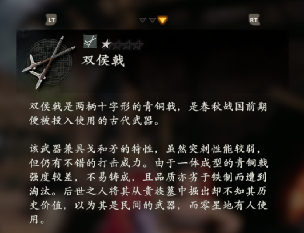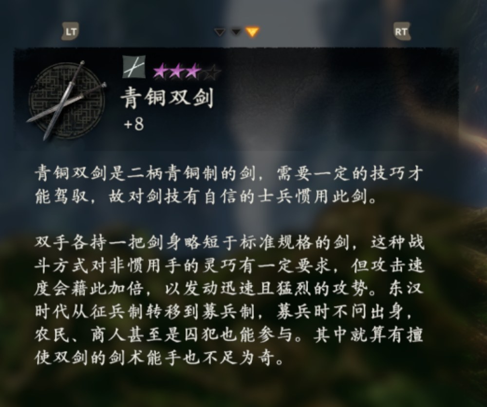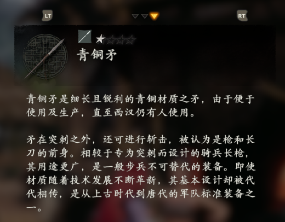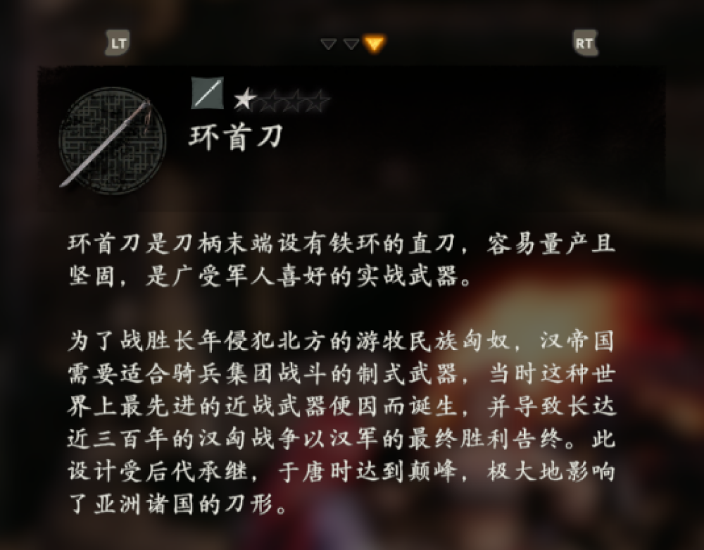 比如在初始武器環首刀的文本中,上面明確寫出了它的出現時間,「這種當時世界上最先進的近戰武器導致長達300年的漢匈戰爭終結」,製作組還非常大方的表示「極大地影響了亞洲諸國的刀型」。