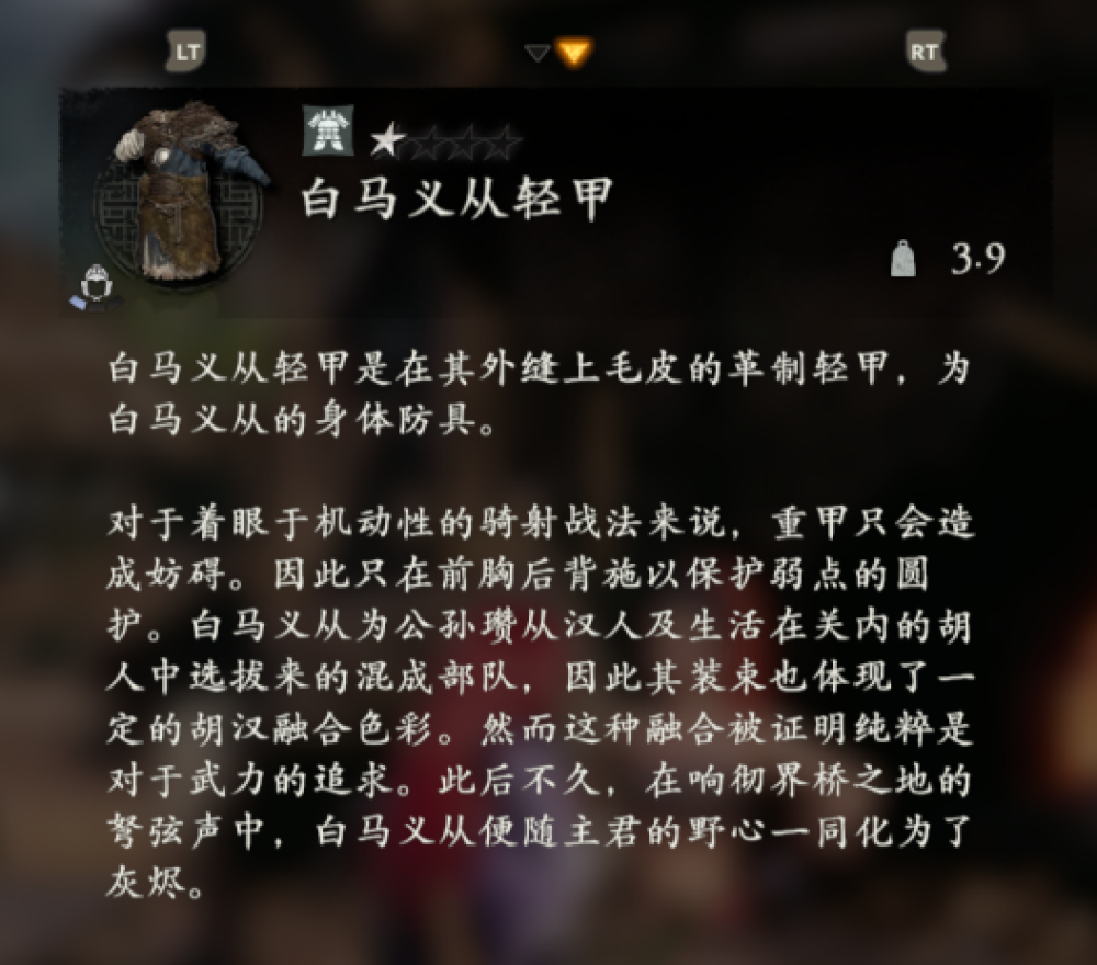 在關於防具「白馬義從輕甲」的文本中,解釋了公孫瓚為什麼要組建以輕騎兵為主的白馬義從。