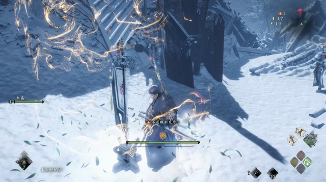 這意味著,「化解」在遊戲機制上帶來的正反饋是細碎的。它們要積攢到一定階段,並通過玩家主動將其釋放才能被激發。但它帶來的負反饋卻相當強烈,「化解」失敗不僅會導致「氣勢」大幅度下降,玩家自身脆弱的血條也吃不了幾下敵人的攻擊。