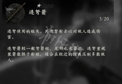連弩使用的短夫。用連弩射擊以對敵人造成傷害。