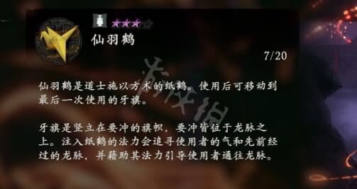 仙羽鶴是道士施以方術的紙鶴。使用後可移動到最後一次使用的牙旗。