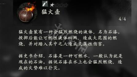 猛火壺裝有一種會猛烈燃燒的液體,名為石漆。
