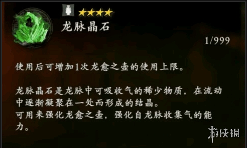 卧龍蒼天隕落中的血瓶是叫做——龍愈之壺,這個要增加血瓶上限的話,必須得到道具【龍脈晶石】,這個東西非常的稀少,需要大家去收集,在試玩版中僅可得到一個。