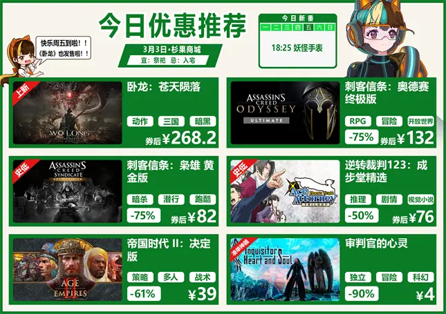今天是 3 月 3 日星期五,期待周末的果娘繼續為大家帶來最新 ACG 新聞: