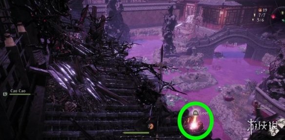 在營地的牙旗(有個拿著斧子的士兵)所在位置往右走小路,一直走到倀鬼所在的區域,從旁邊的坑裡跳下去走到盡頭即可看到。