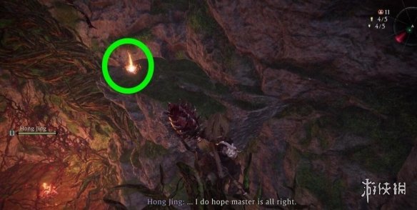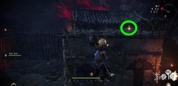 打完與朱厭的BOSS戰之後,爬上懸崖繼續前進直到進入一間屋內,離開屋子立即右轉,通過旁邊的平台爬上屋頂,沿著屋頂一直走到岔路口,立即左轉。