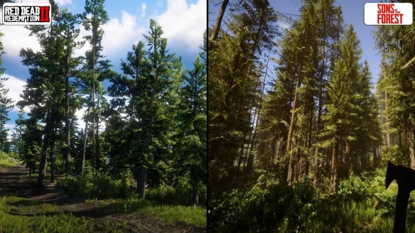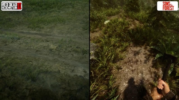 從下面的圖片中可以看到,森林之子圖形和細節還是不錯的,雖然與荒野大鏢客2相比有一些差距,但已經很不錯了。畢竟森林之子開發商是個小團隊,與R星沒法比,而荒野大鏢客2也被譽為打磨最精緻的開放世界遊戲。