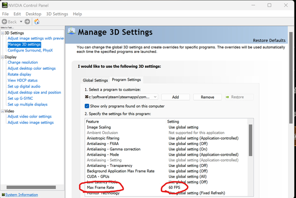 1. N卡控制面板,限定wolong的最大幀數60.(amd yes應該也有類似的功能限制最大幀數)。