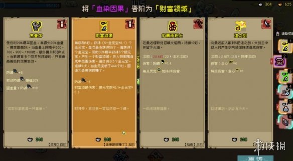 4.第三階段:有狗招狗,在金幣攢到550以前,寶箱優先順序:金元寶100>>>>防禦+2>閃避+5>金錢掉落>血量>暴擊。升級優先順序:金錢掉落 > 陽魄/陰 > 會心 > 靈覺 。(相同等級選陰魄,等級高選陽魄,切記不可浪費金幣刷新,沒有好的選擇就隨便選一個)
