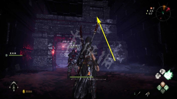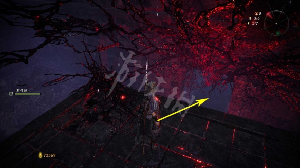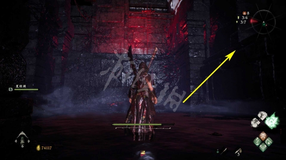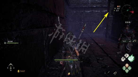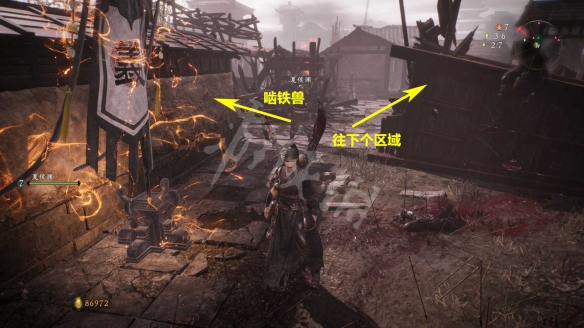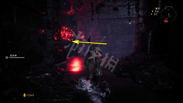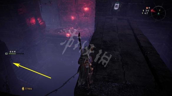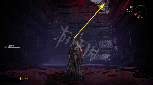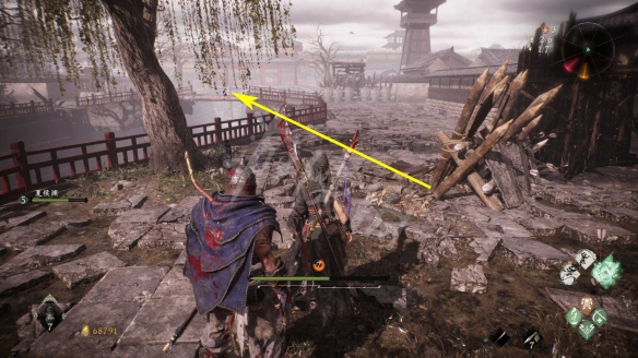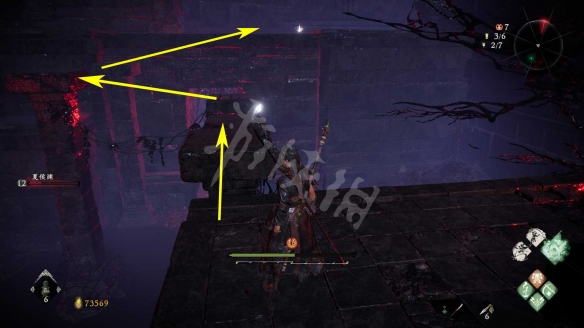 消滅掉入口的水鬼。進去後先回頭,從下圖箭頭標記的臺階跳上去。