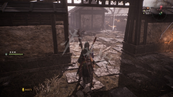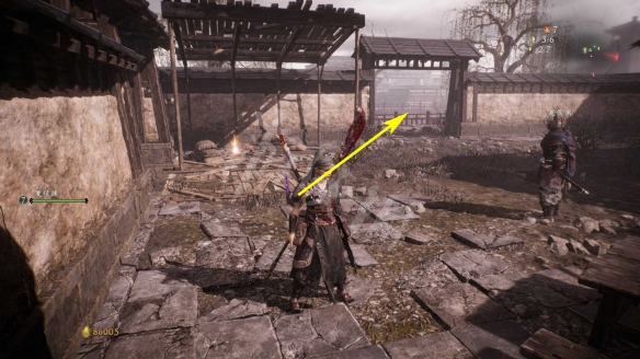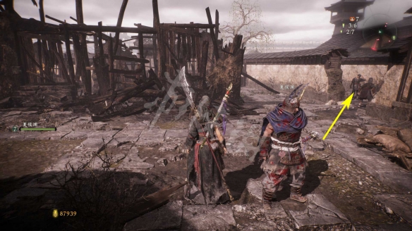 回到牙旗點,遠處房子的角落裡有個拾取物。