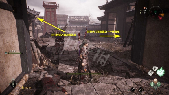 出來後,先開啟右側的大門,可連通牙旗2處。