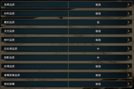 通過配置可以根據情況選擇降低,遊戲中的紋理、視距、抗鋸齒選高。動態模糊幀率低於60的才開啟,景深會讓遠處的模糊。其他的霧品質、陰影品質和後期處理都調中或者低是最為合適的。