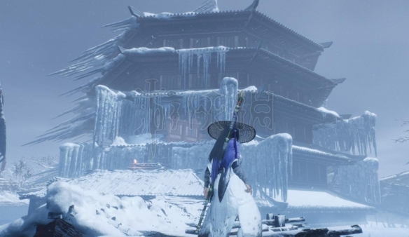 穿過積雪的眾多屋頂後,來到建造大型雕像的圓形建築。