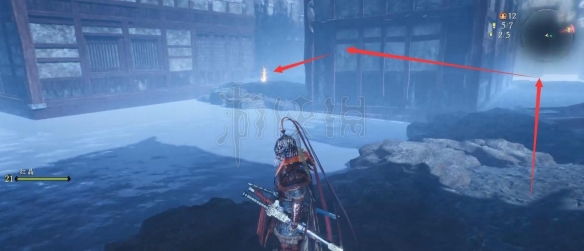 建築內有些士兵,穿過建築,出口處右拐跳過障礙物。
