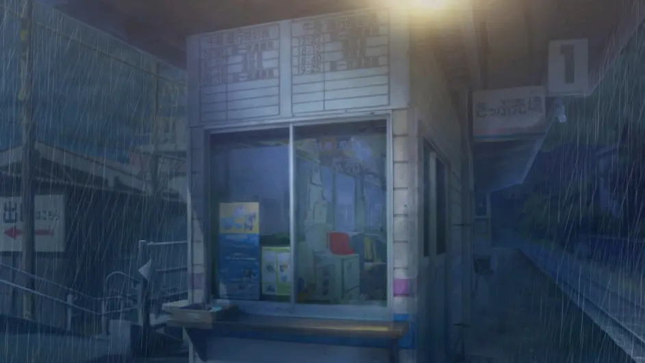 《愛上火車》裡在雨中的御一夜溫泉站月臺
