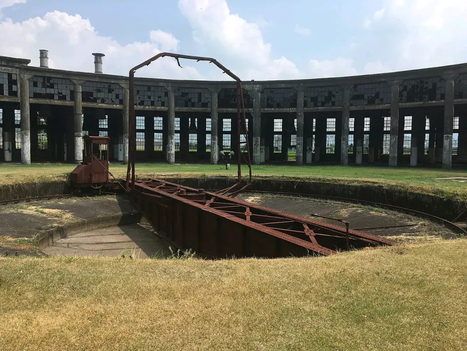 在扇形車廠中間設有轉車盤。在2009年(平成21年)2月6日認定為近代化產業遺產。在2012年(平成24年)登入為國家登入有形文化財。