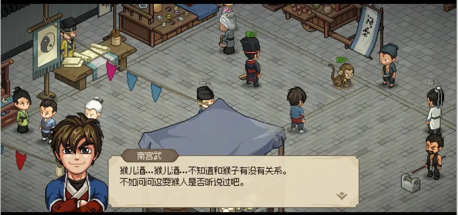 到達臨安城之後先去上面的第一座橋,觸發劇情。然後去集市找耍猴的要猴兒酒,這個時候建議直接選2000錢買,最省事情。這裡注意,雖然你可以在這個劇情之前找耍猴的易物換一瓶猴兒酒,但是進入劇情你依然需要重新找他要酒。