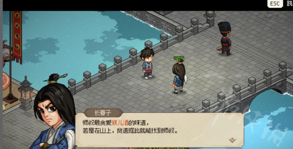 b、進入霖安城,於橋上觸發劇情尋找師叔,需求猴兒酒或者尋找本人