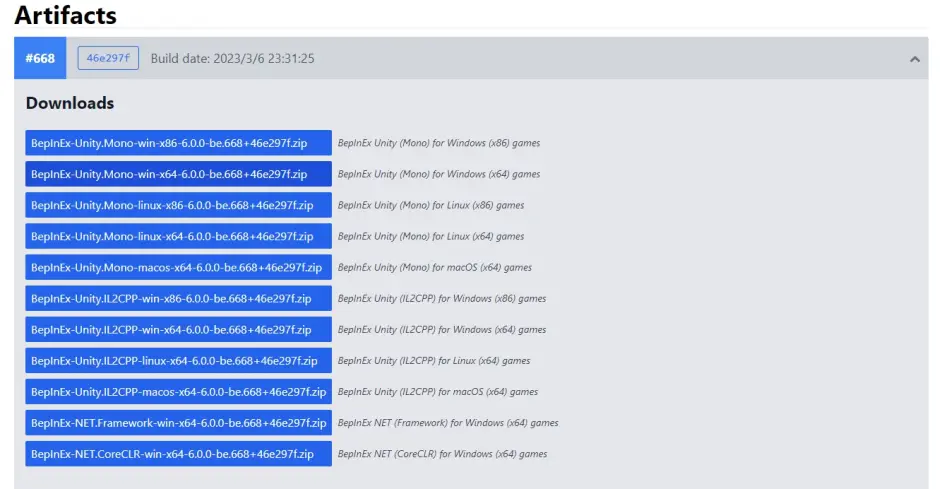 在Artifacts裡找到對應版本下載,大俠立志傳為 BepInEx Unity (IL2CPP) for Windows (x64) games