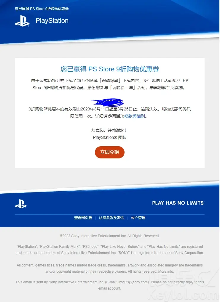 “玩轉新一年”活動獎勵“PS Store 9折購物優惠券”已發放