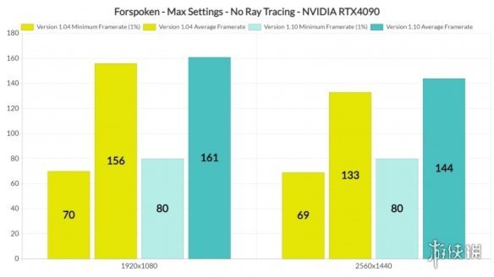 外媒使用的PC配置為i9 9900K/16GB DDR4記憶體(3800Mhz)/RTX4090顯示卡/Windows 10 64-bit。為了便於比較,外媒關閉了光追,並採用了最高畫質設定,他們還使用了遊戲內建的benchmark,從而能夠更準確地反映出遊戲的效能執行表現。