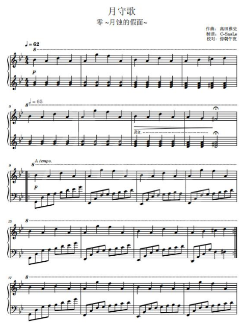 在零月蝕的假面這款遊戲中,裡面有一首月守歌十分經典,本期小編給大家帶來的就是零月蝕的假面月守歌曲譜分享,感興趣的小夥伴們一起來了解一下吧~