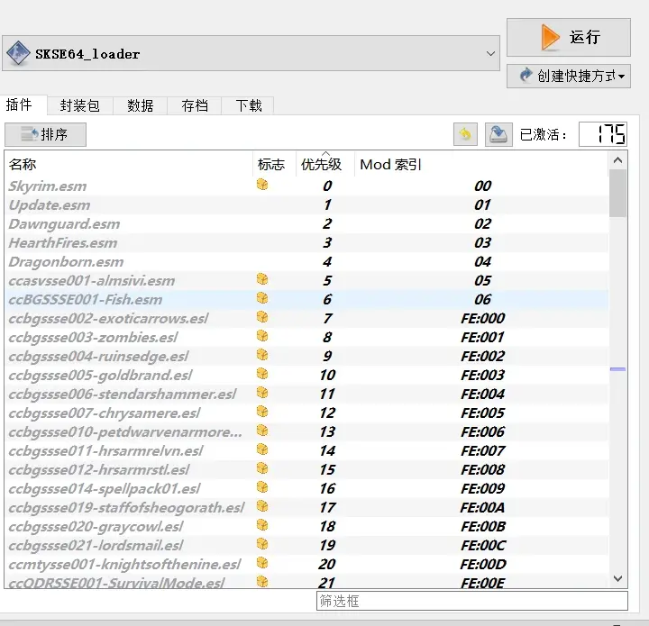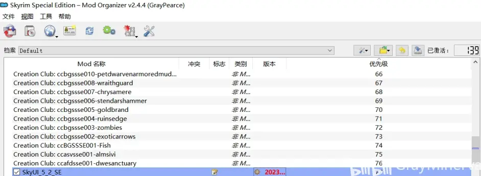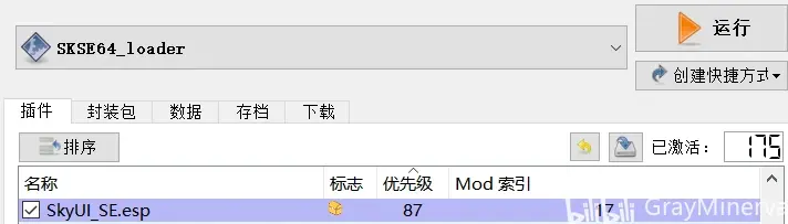 安裝完畢後,mod列表裡顯示SKYUI_5_2SE,勾選