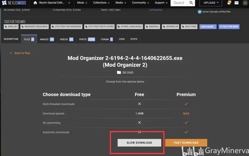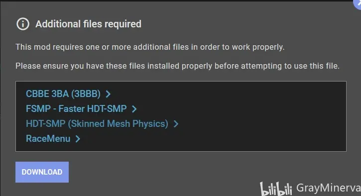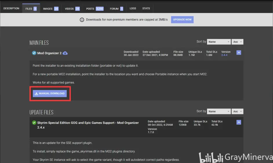 在N網搜尋SKYUI與下載MO2的操作流程整體相同,在下載時彈出如下視窗