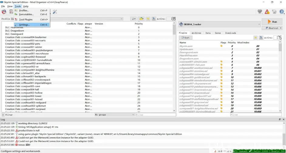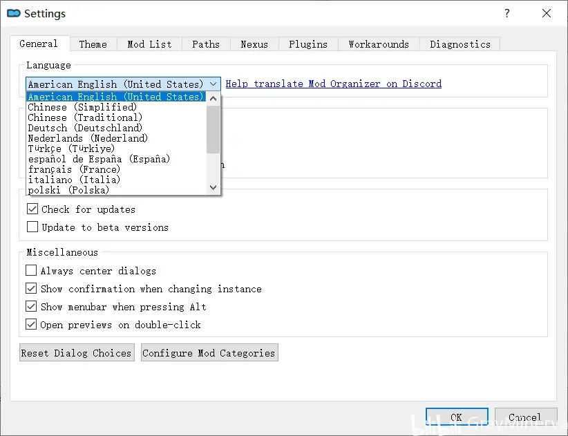 等待安裝完成即可,安裝完成後執行ModOrganizer.exe,點選左上角Tools-Settings,在Language中將預設的American English(United States)變為Chinese(Simplified),點選OK即可設定為簡中頁面