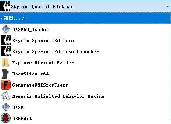 返回MO2主介面,點選右側的Skyrim Special Edition後,點選編輯